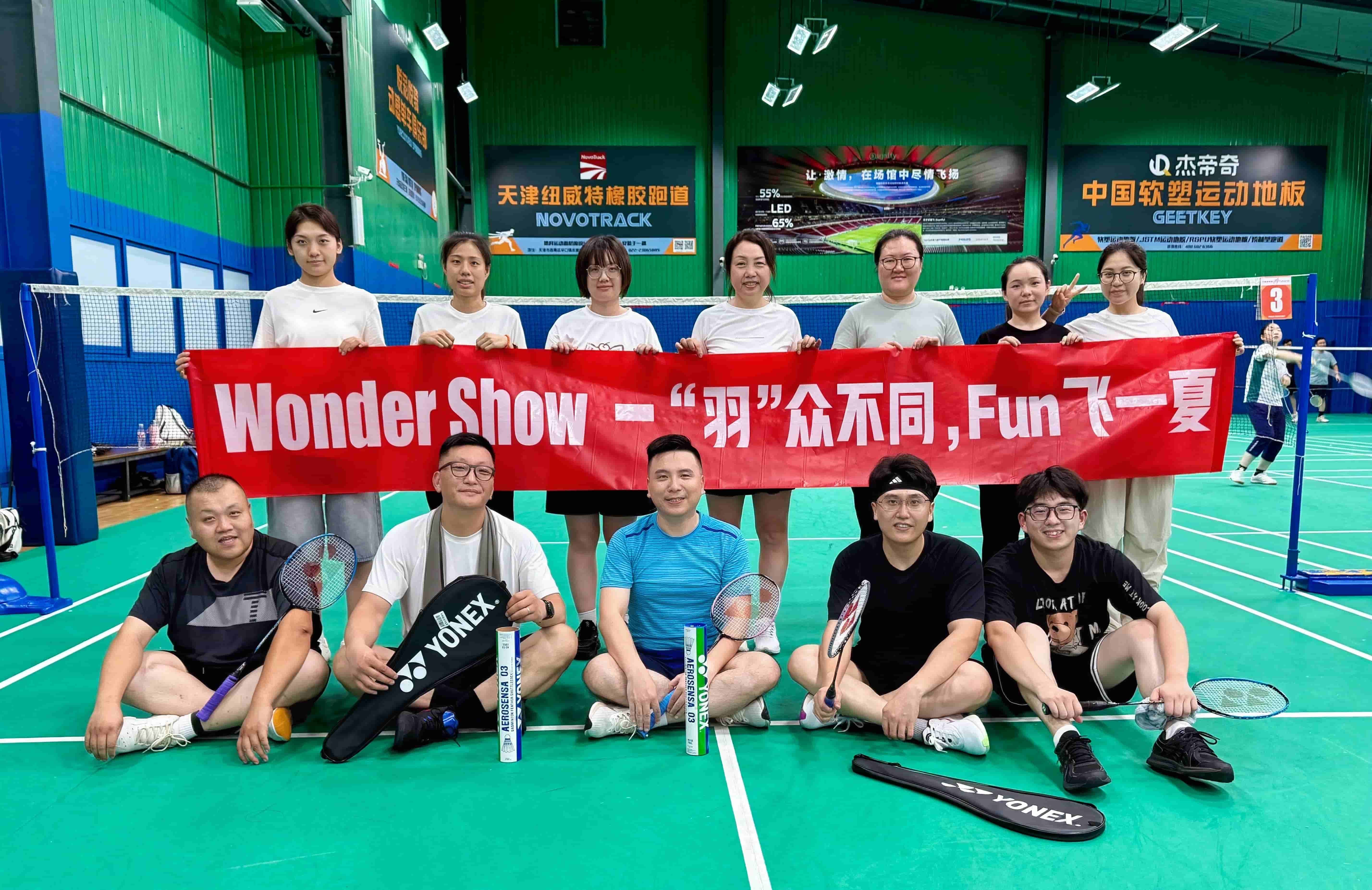 近日,天津市万德思诺国际贸易有限公司成功举办了以 “Wonder Show——‘羽’众不同,Fun 飞一夏” 为主题的首届羽毛球运动会。这场充满活力与欢乐的团建活动,不仅让员工们在激烈的比赛中尽情释放激情,也进一步促进了团队之间的沟通与合作,整个赛场都弥漫着开心和热情的氛围。整场活动历时三小时,现场气氛热烈,员工参与踊跃,取得了圆满成功。