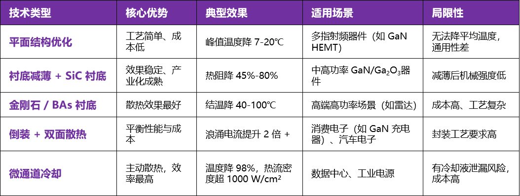 衬底是热量从沟道到散热器的 “主干道”,这一技术从 “减短距离” 和 “拓宽道路” 两方面发力,是目前产业应用最广的方案之一。