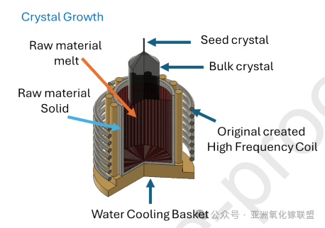 图1. 冷坩埚氧化物晶体生长法(OCCC)示意图。