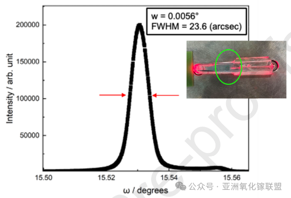 ● 经 X 射线透射晶体学(XRC)验证,晶体质量优异,可媲美商用 EFG 衬底。