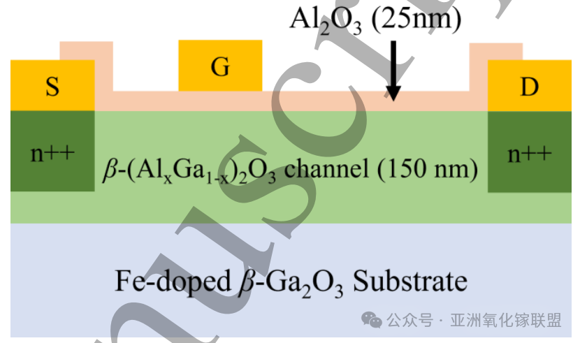 图5. 未采用场板结构的 β-(AlₓGa₁₋ₓ)₂O₃ MOSFET 的截面示意图。