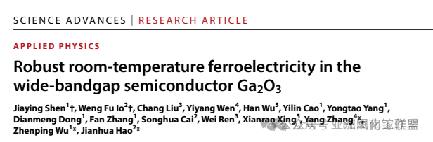 香港理工大学郝建华教授,南开大学张杨教授,北邮吴真平教授等人发表题为 “Robust room-temperature ferroelectricity in the wide-bandgap semiconductor Ga2O3”于Science Advanced上。