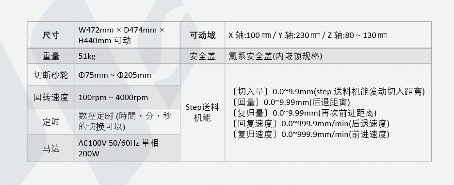 5. 根据Step 机构的利用,容易咬合砂轮的铁系材料也轻易被切断。