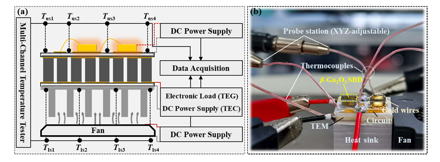 由西安电子科技大学郝跃院士、马晓华教授、郑雪峰教授的团队在学术期刊 Energy Conversion and Management 发布了一篇名为 Integration of β-Ga2O3 Schottky Barrier Diodes on thermoelectric modules for heat recovery and active cooling(β-Ga2O3 肖特基势垒二极管在热电模块中的集成,用于热回收和主动冷却)的文章。