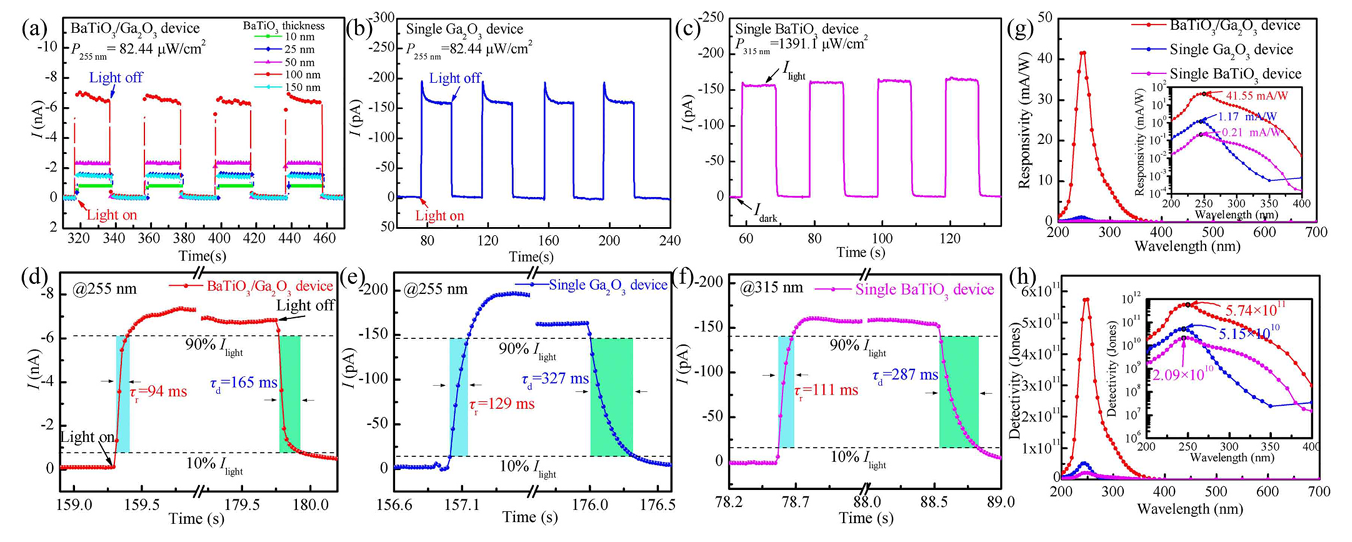 • BaTiO3/Ga2O3 光电探测器的性能优于单独的 Ga2O3 和 BaTiO3 基光电探测器。